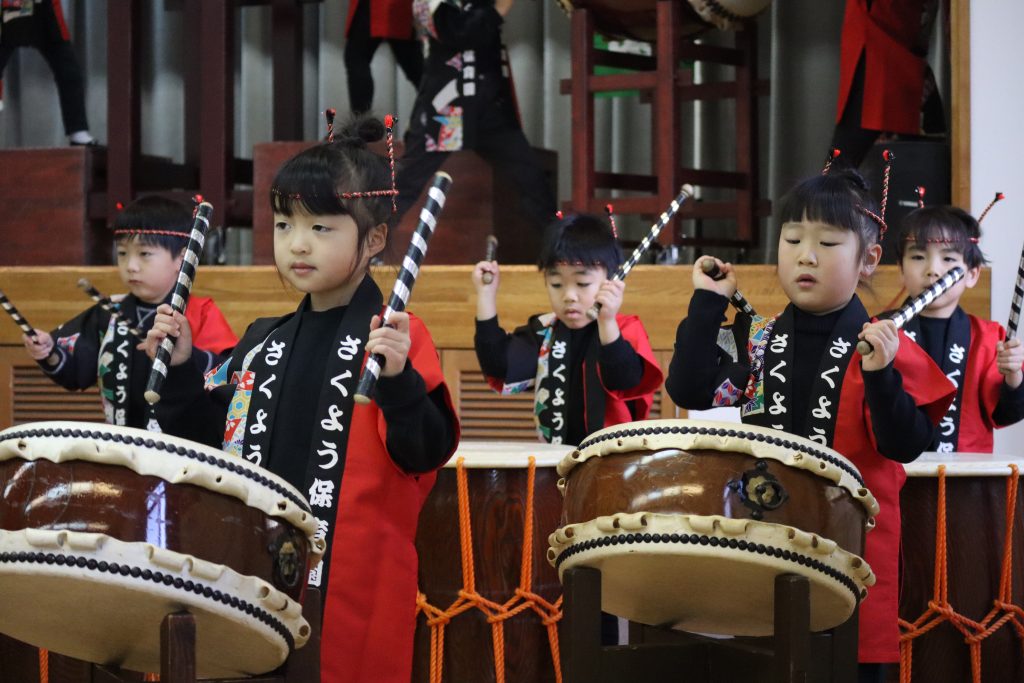 白組さんが津山中央公民館文化祭に参加し、和太鼓演奏を披露しました。 日頃の練習の成果を発揮するのもこれが最後になりました。元気よく演奏できて文化祭を盛り上げることができたと思います。 地域の皆様ともいろんな交流ができ、楽しいひと時を過ごすことができました。